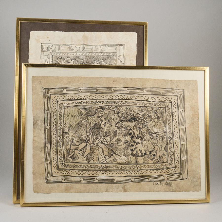 2 s, Pedro Diaz Antonio, (1945-). Signerade, yttermått inklusive ram: 67x49, yttermått inklusive ram: 50x68 cm
