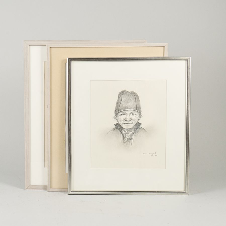 GRAPHITE DRAWINGS, 3 st, Signerade, daterade 1975 - 1985, Sameporträtt. Bildmått: 26x22 cm, yttermått inklusive ram: 42x37 - 47x37 cm