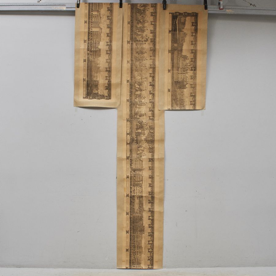 3 delar, 1900-tal, kopia efter begravningsplanschen, Karl X, 46x257+ 100+ 100, oramad