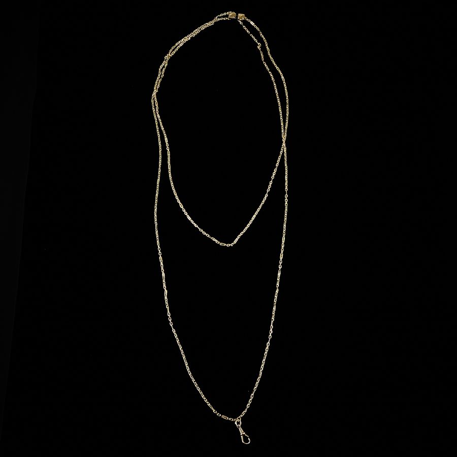 hänge med två små pärlor, 18k guld. Längd: 38 cm, bruttovikt: 27g