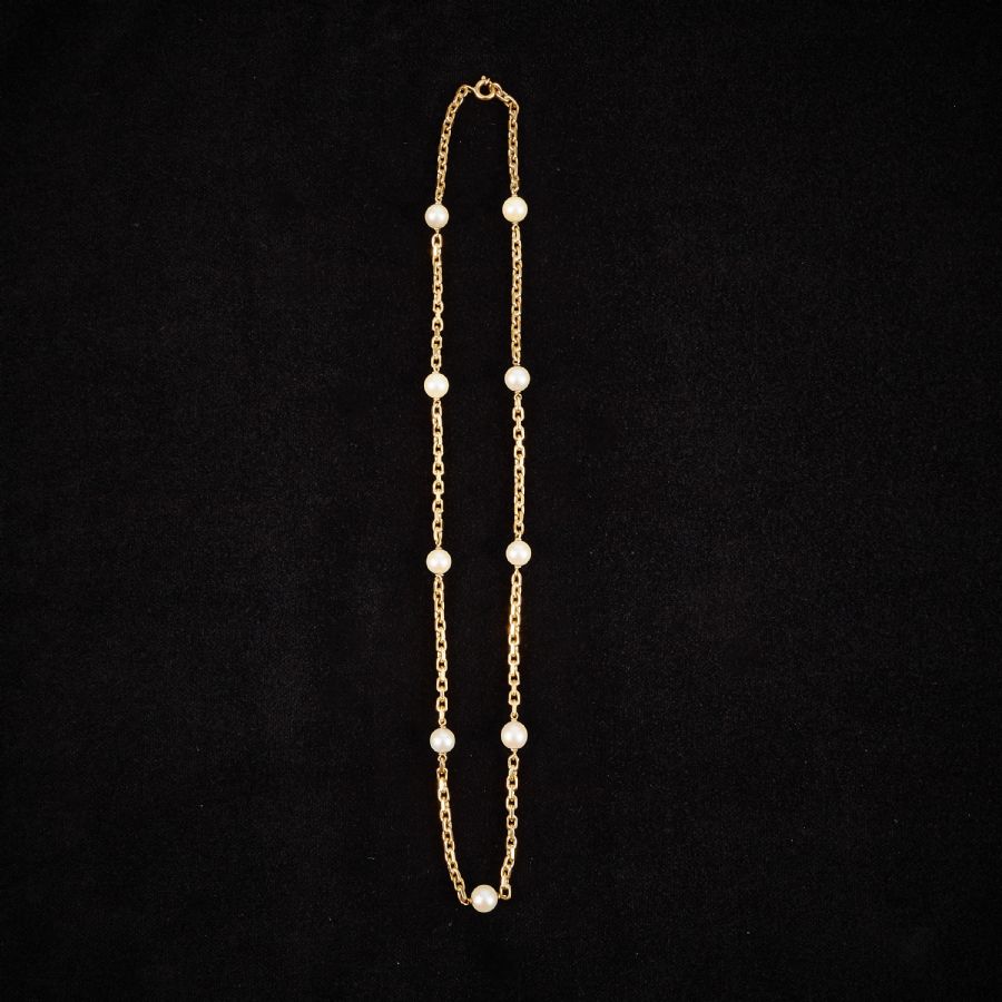 18k guld, with pearls. Length: 50 ca, weight: 10g ..//