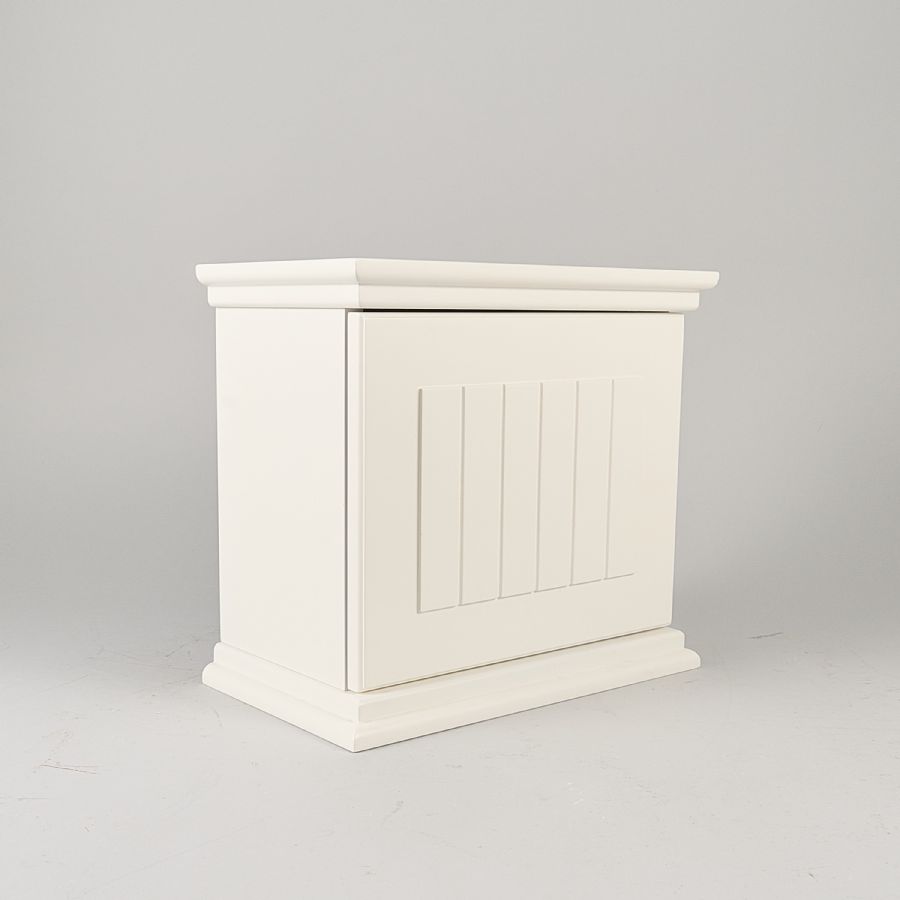 nutida, vitlackat, dörr med hyllplan i glas. Bredd: 35 cm. Höjd: 32 cm, djup: 20 cm