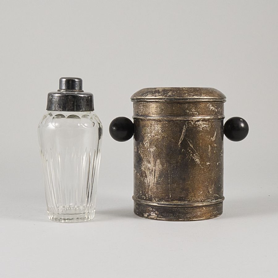 + shaker, 2 delar, Nysilver. Höjd: 20-22 cm