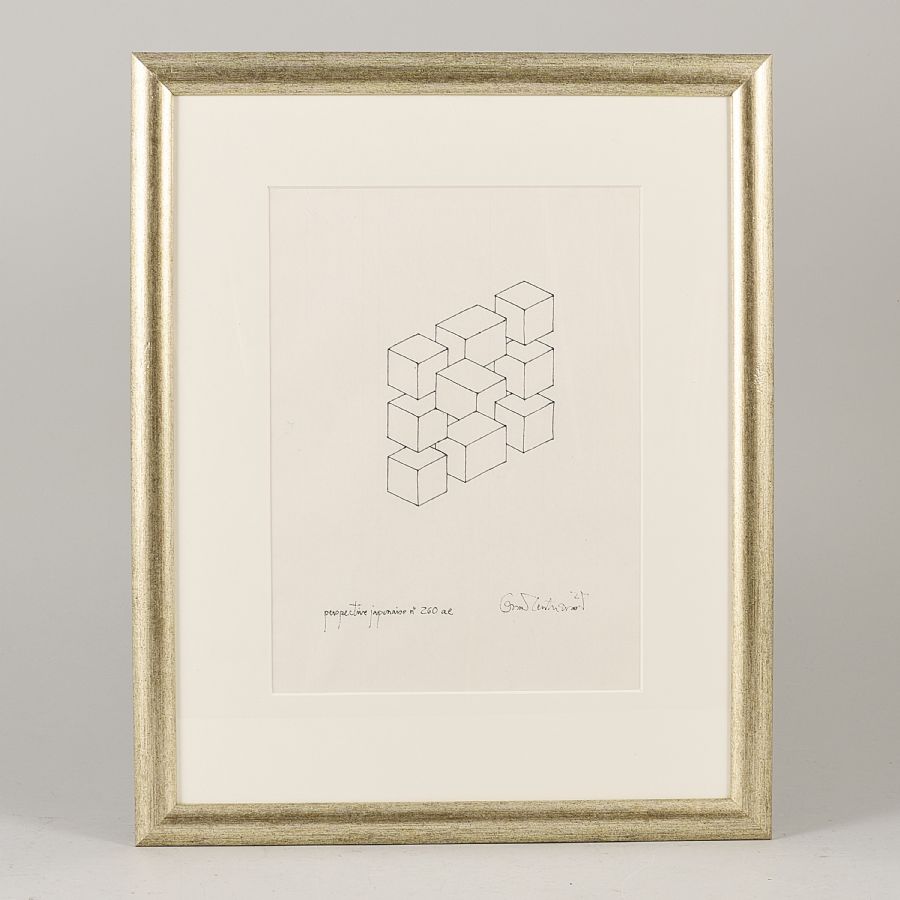 Tusch, "Perspektive japonaise". Signerad. Bladets mått: 38x28 cm, yttermått inklusive ram: 47x37 cm