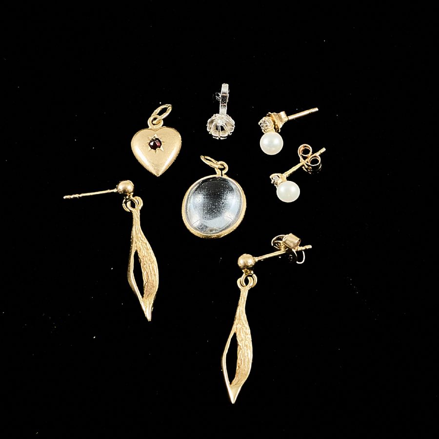7 delar, 18k guld, med stenar. Vikt: 4,5g ca