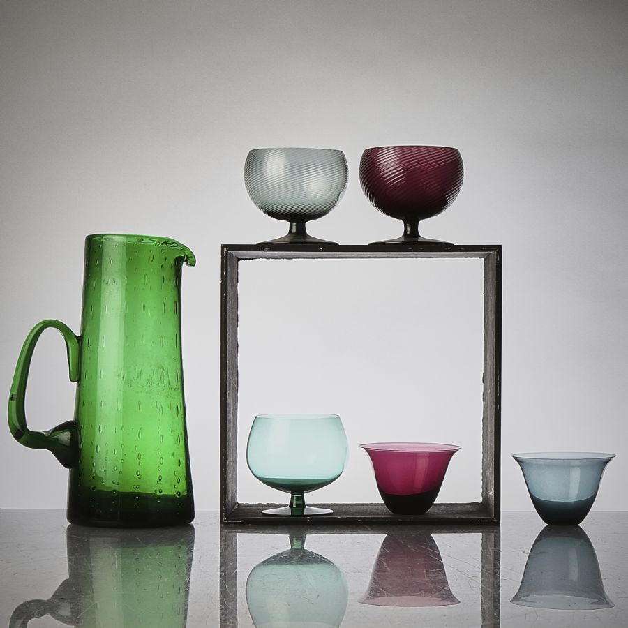 + coupe glass, 15 pieces, 1950s, färgade. Height: 10-28,