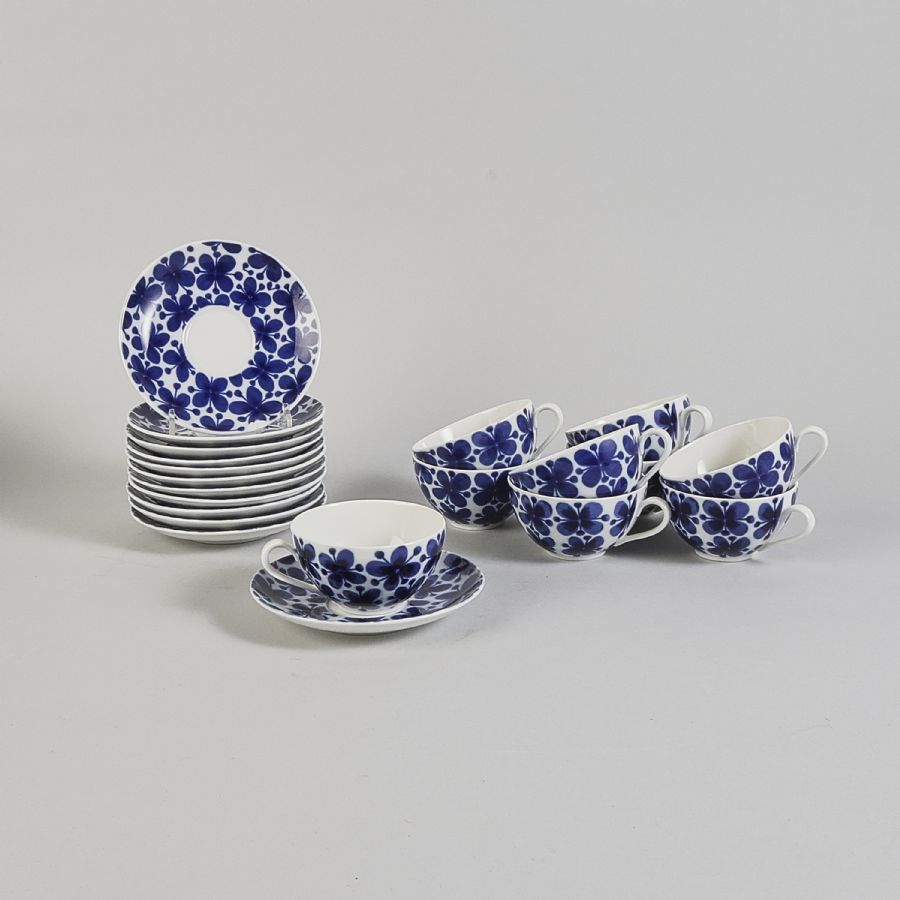 Kaffekoppar med fat, 9 delar, Mon Amie, Rörstrand, blåblommigt mönster på ljus botten
