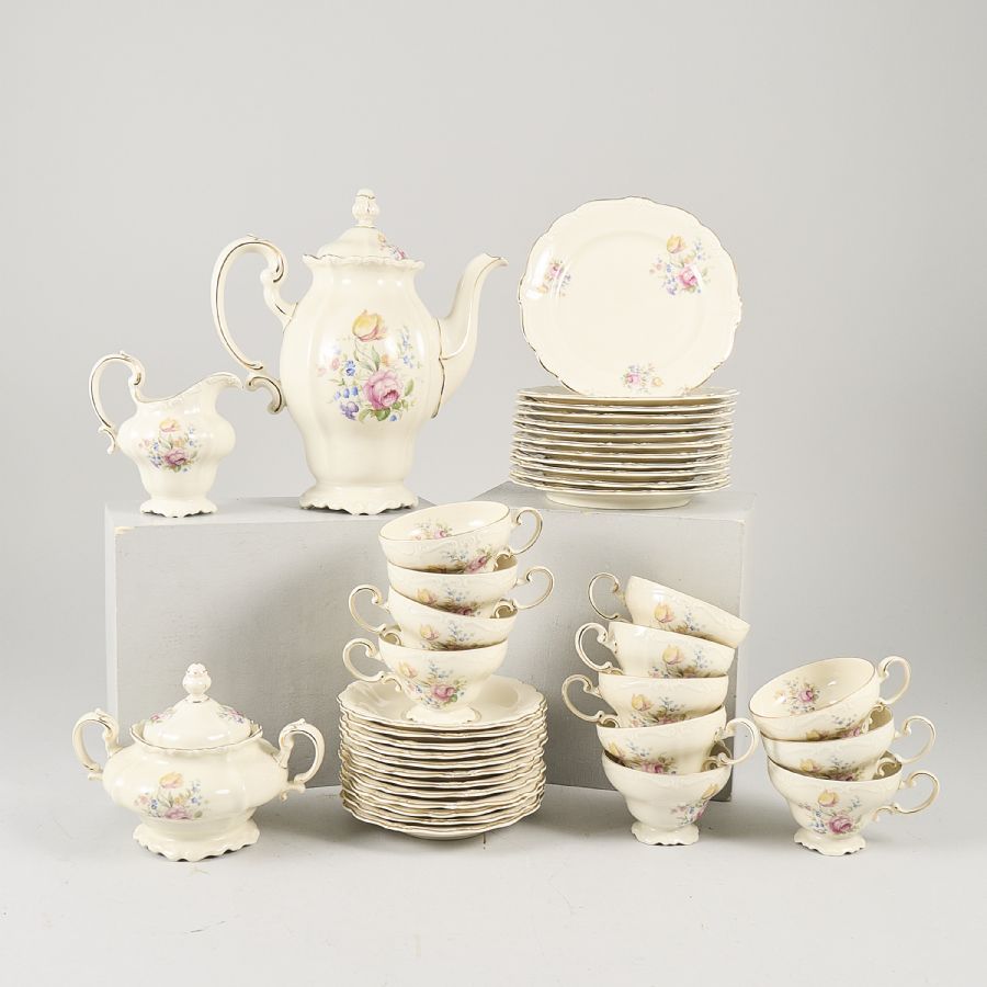 27 delar, Rosenthal, Tyskland, "Pompadour", 12 kaffekoppar med fat, assietter, kaffekanna sockerskål, gräddkanna. Höjd: 6-26 cm