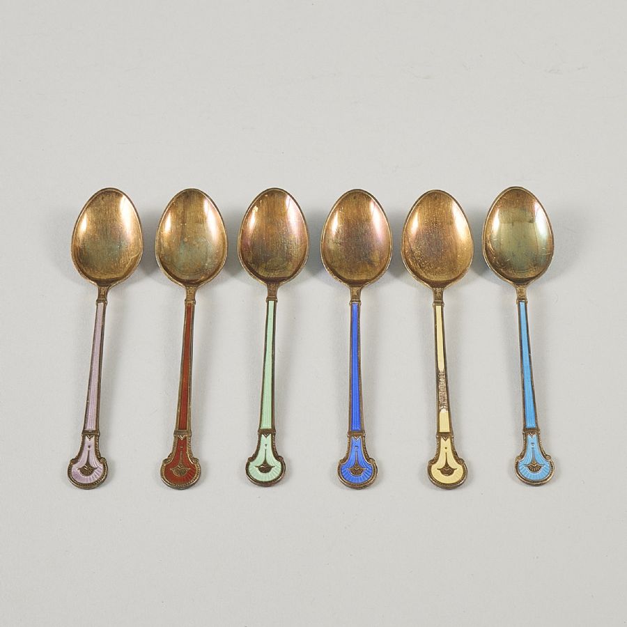 6 st, sterlinsilver med emalj. Längd: 10 cm, Vikt: 50 g