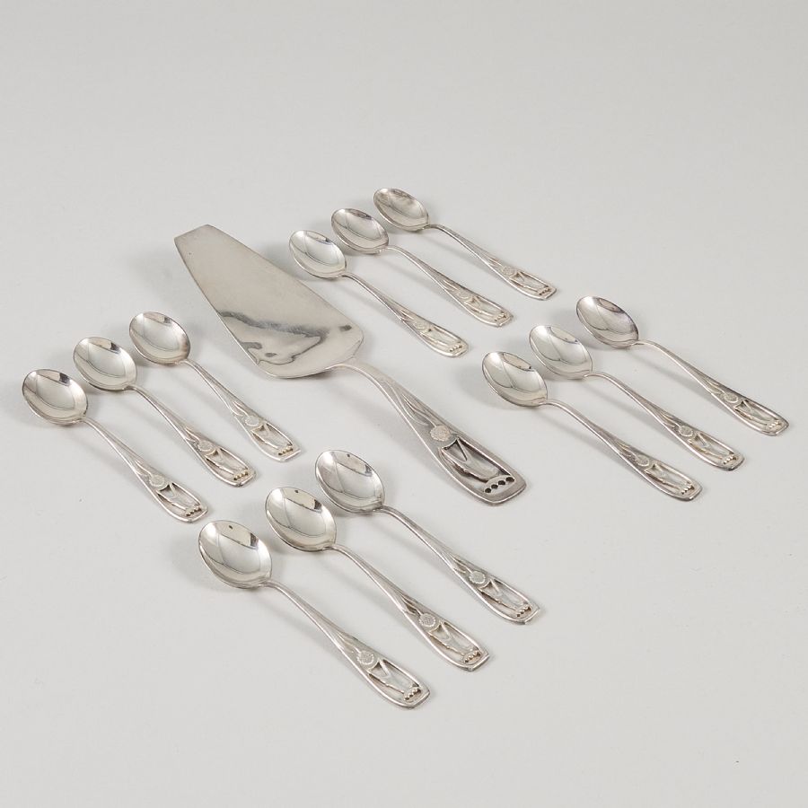 12 st, + tårtspade, silver. Längd: 10,5-20,5. Vikt: 240 gr ca