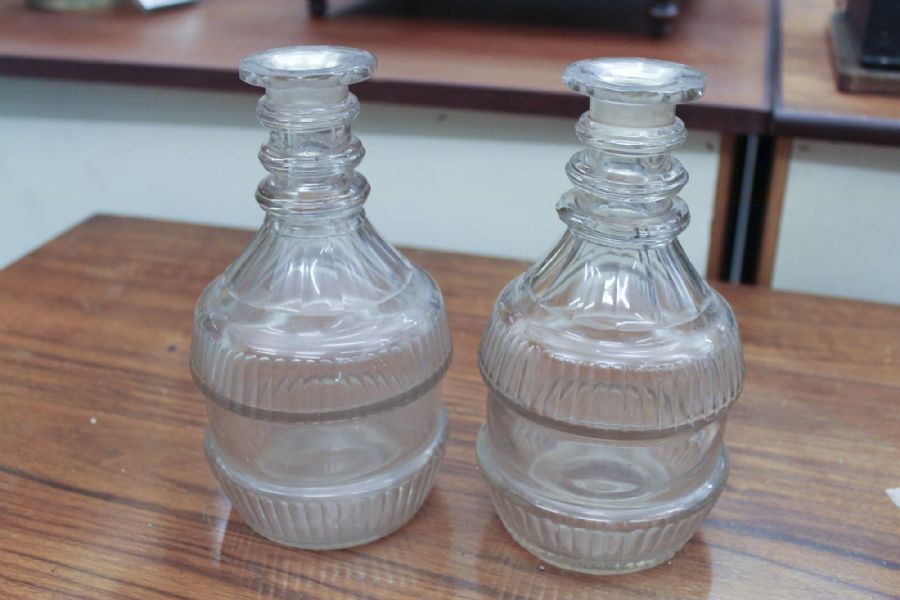 2 pcs, cut glass, around year 1900. Height: 30-31,