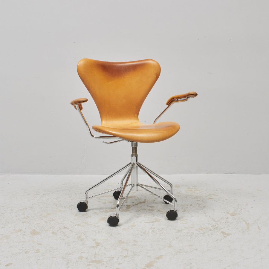 Liknande föremål: arne jacobsen danmark dansk dansk design danska danskt europa helklädd i läder hjul karmstol norden skandinavien skandinavisk stomme i krom
