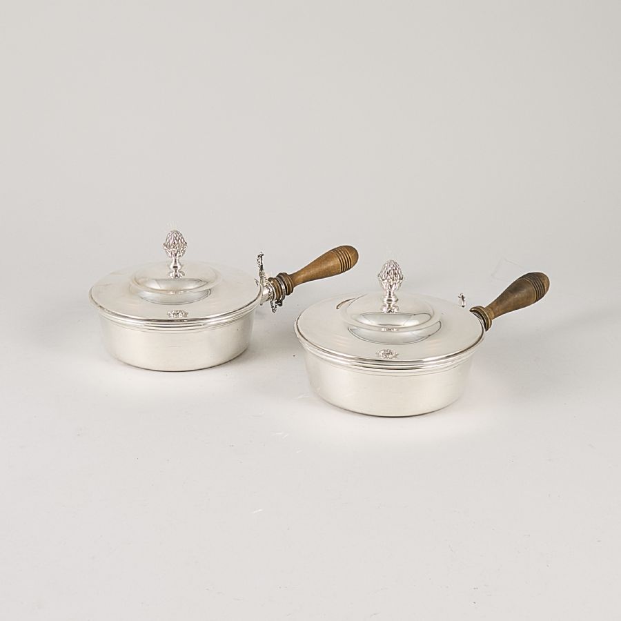 ett par, med lock, nysilver, A G Dufva. Längd: 31 cm, diameter: 18 cm