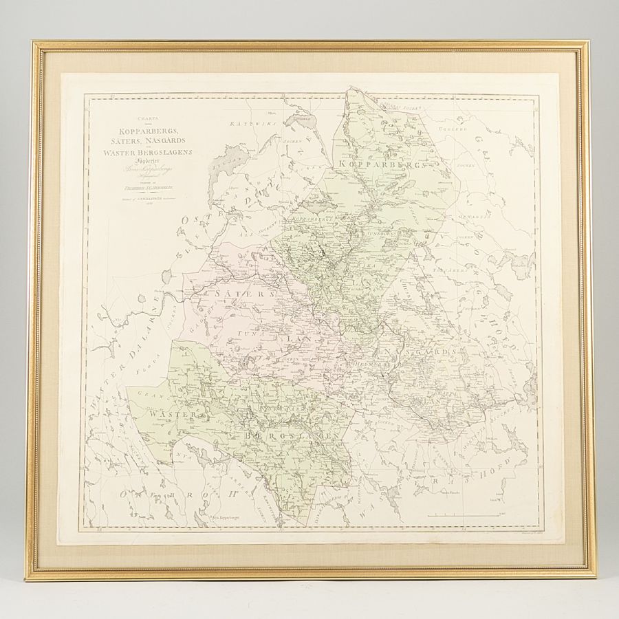Kopparberg, Säter & Näsgårds län, Akrel, "1800", bladets mått: 63x66 cm, yttermått inklusive ram: 71x74 cm