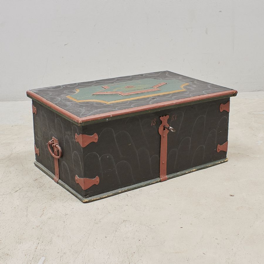 Allmoge, bemålad. Bredd: 80 cm, djup: 52 cm, höjd: 34 cm