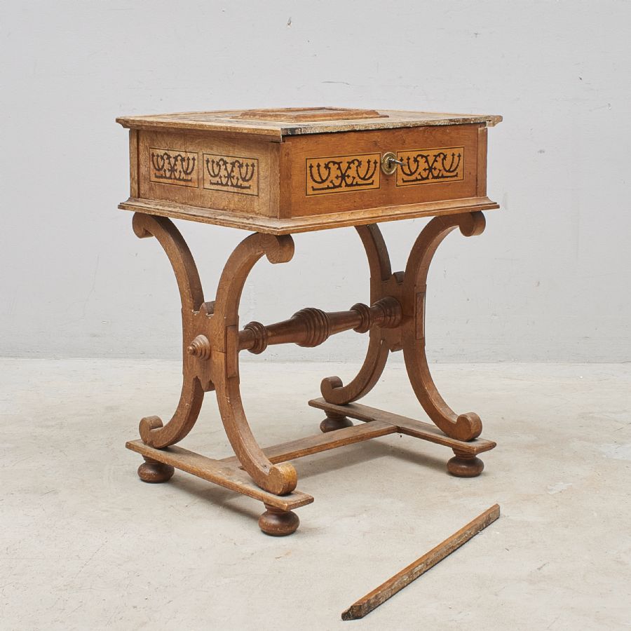 1800-tal, intarsia. Längd: 57 cm. Djup: 50 cm, höjd: 74 cm