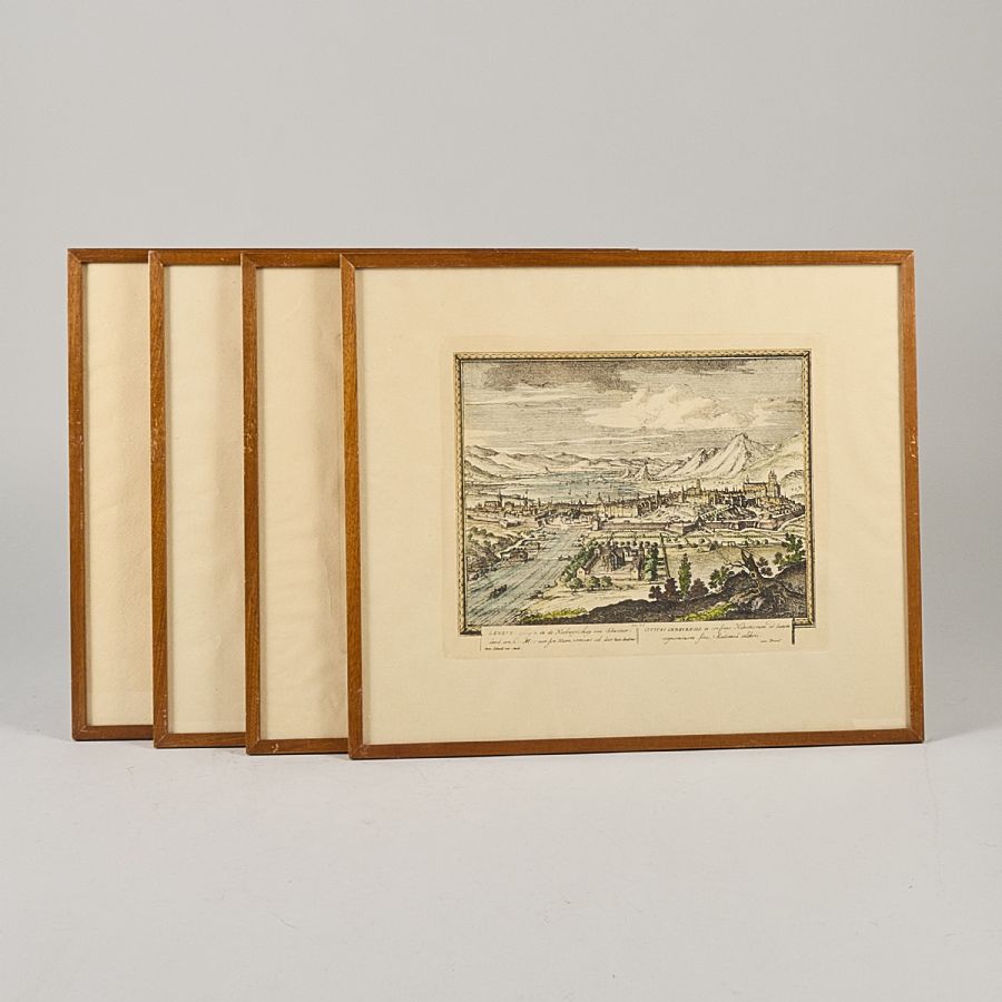 4 st, marin & städer, eftertryck. Bildmått: 20x25 cm, yttermått inklusive ram: 35x41 cm. Ej signerad