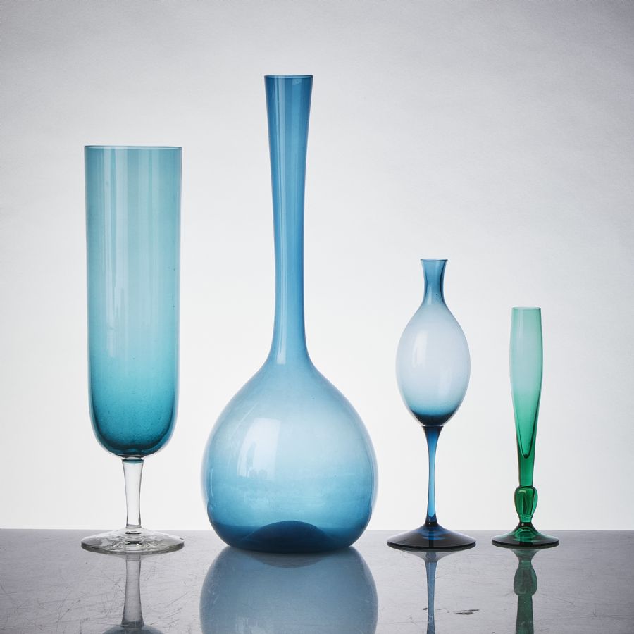 4 delar, färgat glas, 1950/60-tal. Höjd: 20-40