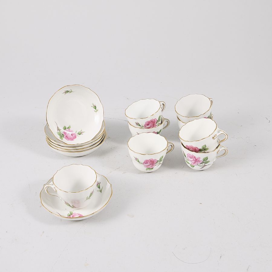 Meissen. 6 st + 2 extra koppar. Längd: 8-11 cm, djup: 6-11 cm, höjd. 11-23 cm