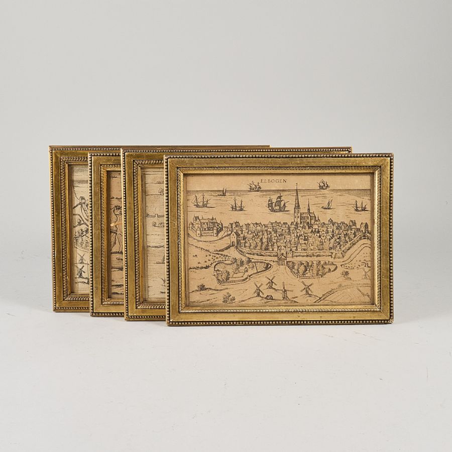 4 pcs, föreställande Skånska städer, Lund, Helsingborg, Malmö och Landskrona, outer dimensions including frame: 22x30 cm,