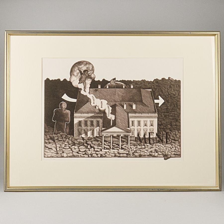 Kopparstick, "Mene mene tekel". Signerad, numrerad 73/100, daterad -78,45x62 cm, yttermått inklusive ram: 71x96 cm