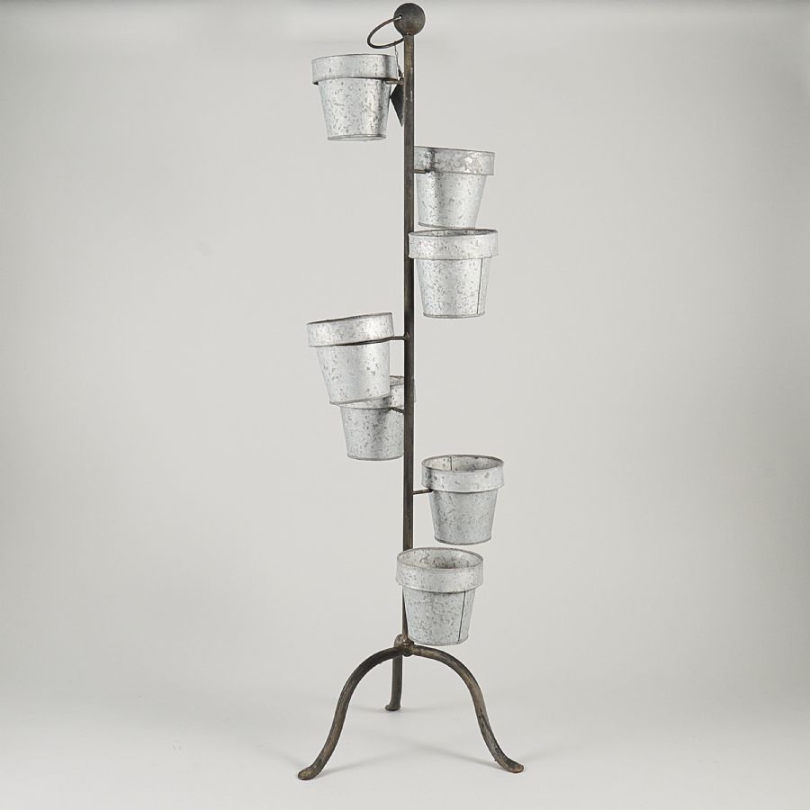 smide, 7 st krukor i zink. Höjd: 96 cm, krukor, diameter: 11 cm