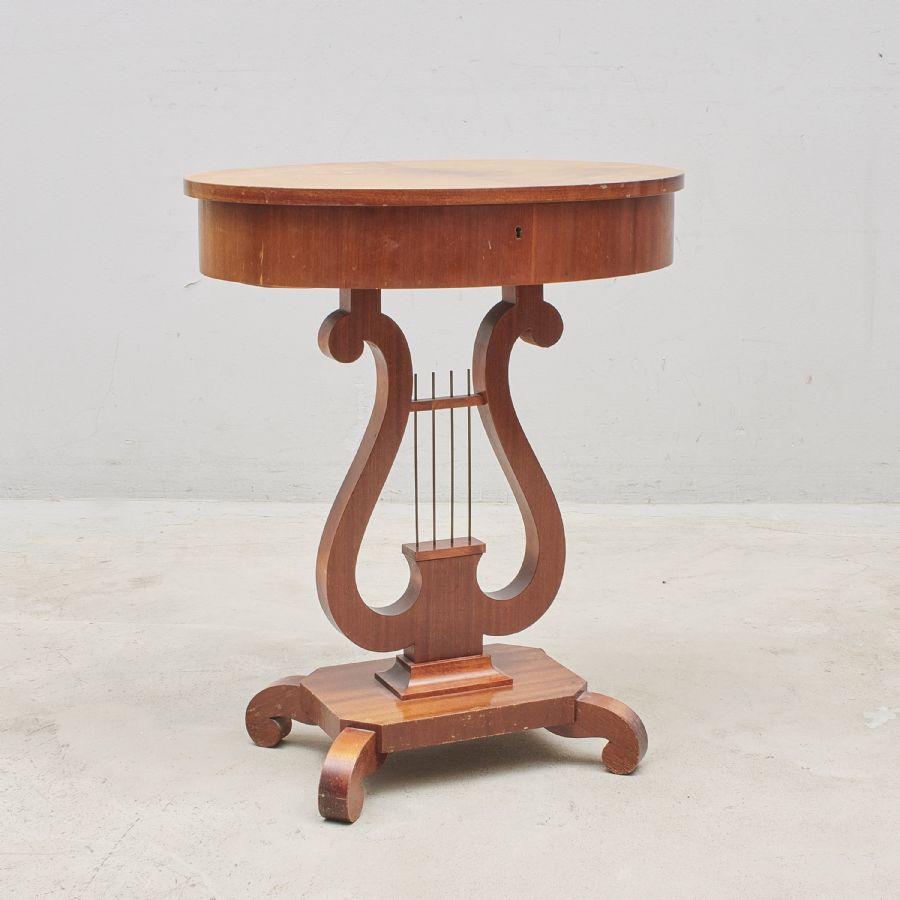 Liknande föremål: bord lampbord lyrformad lyrformad fot lyrfot mahogny sybord trä