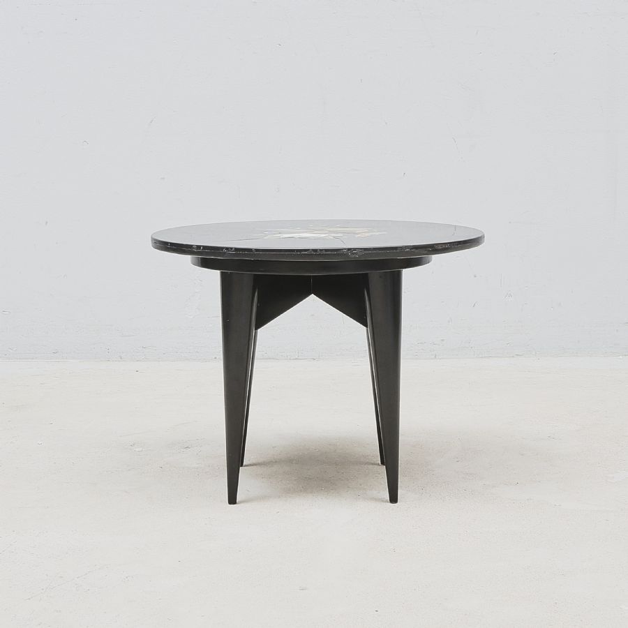 Stenskiva, pietra dura, blommor. Diameter: 48 cm, höjd: 37 cm