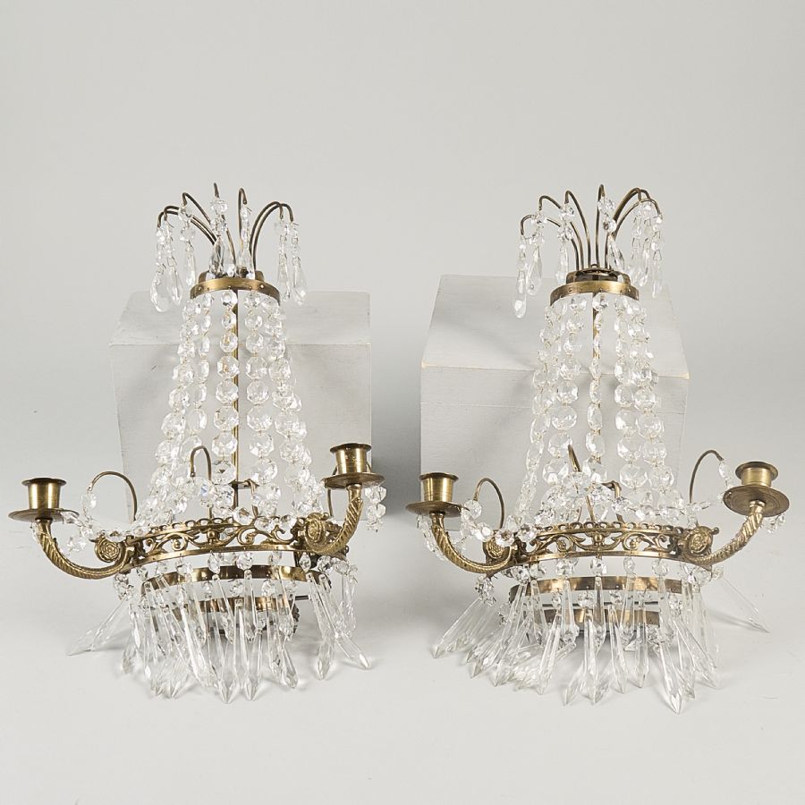 ett par, med prismor, två ljusramar. Höjd: 45 cm