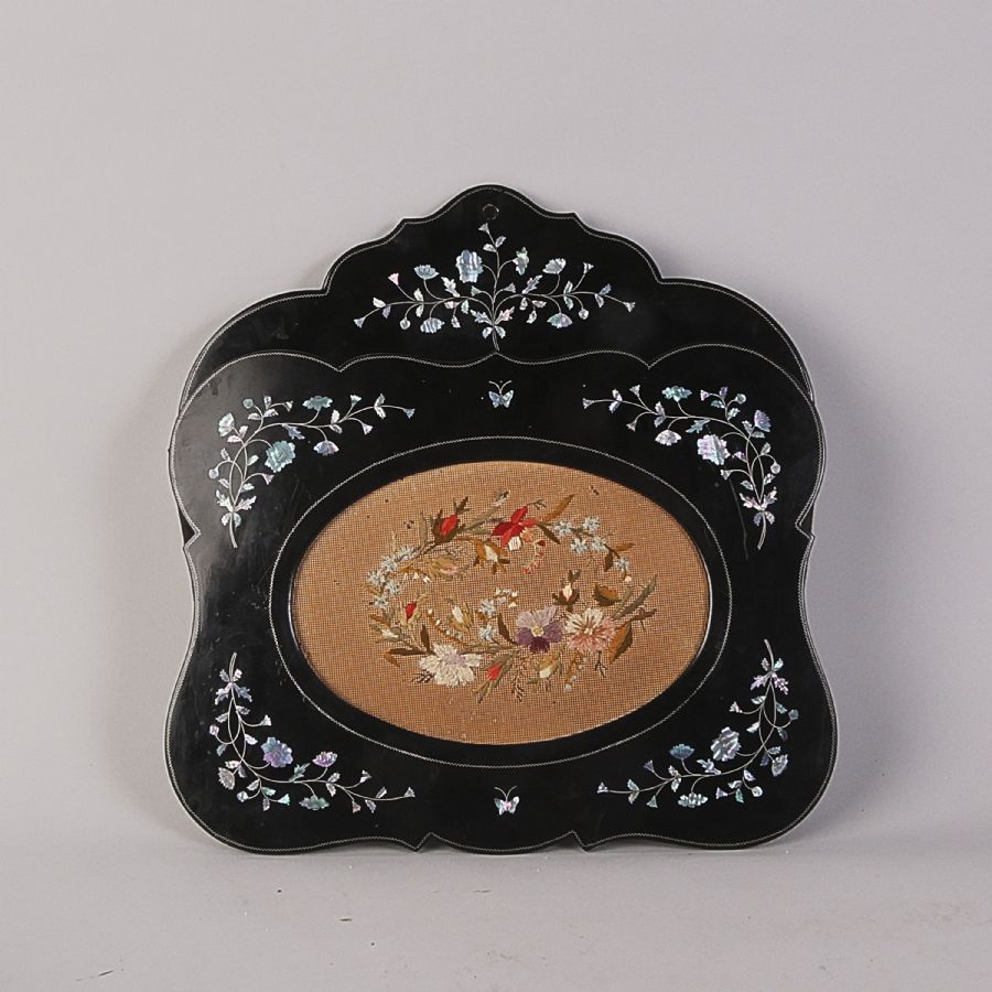 omkring 1900, väggmonterad, pärlemointarsia, broderad, 36x35 cm