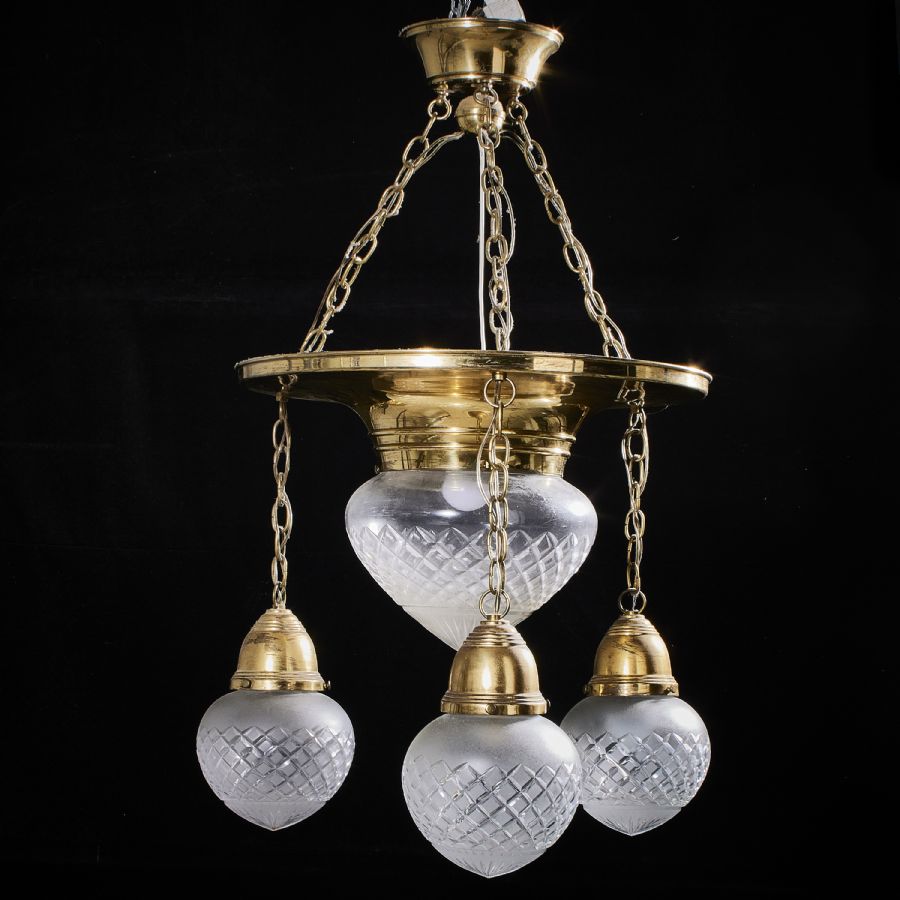 Liknande föremål: art nouveau gyllene, guldfärgad jugend jugend-stil jugendstil kupor av glas ljuskronor metall mässing takarmatur taklampa taklampor