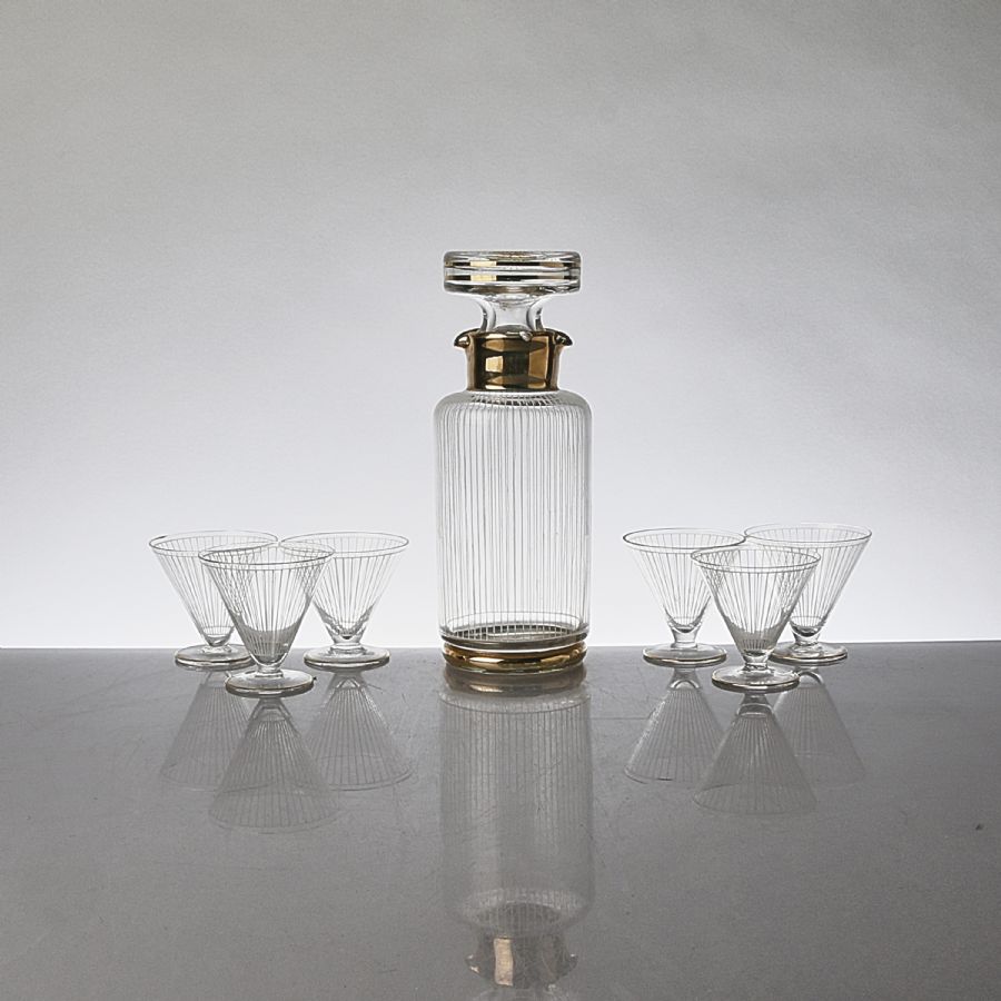 + karaff, 7 delar, 1950-tal. Höjd: 7-23 cm