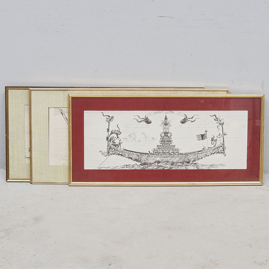 3 st, ”Ballon du Roy”, yttermått inklusive ram: 45x93 ca. Ej signerad