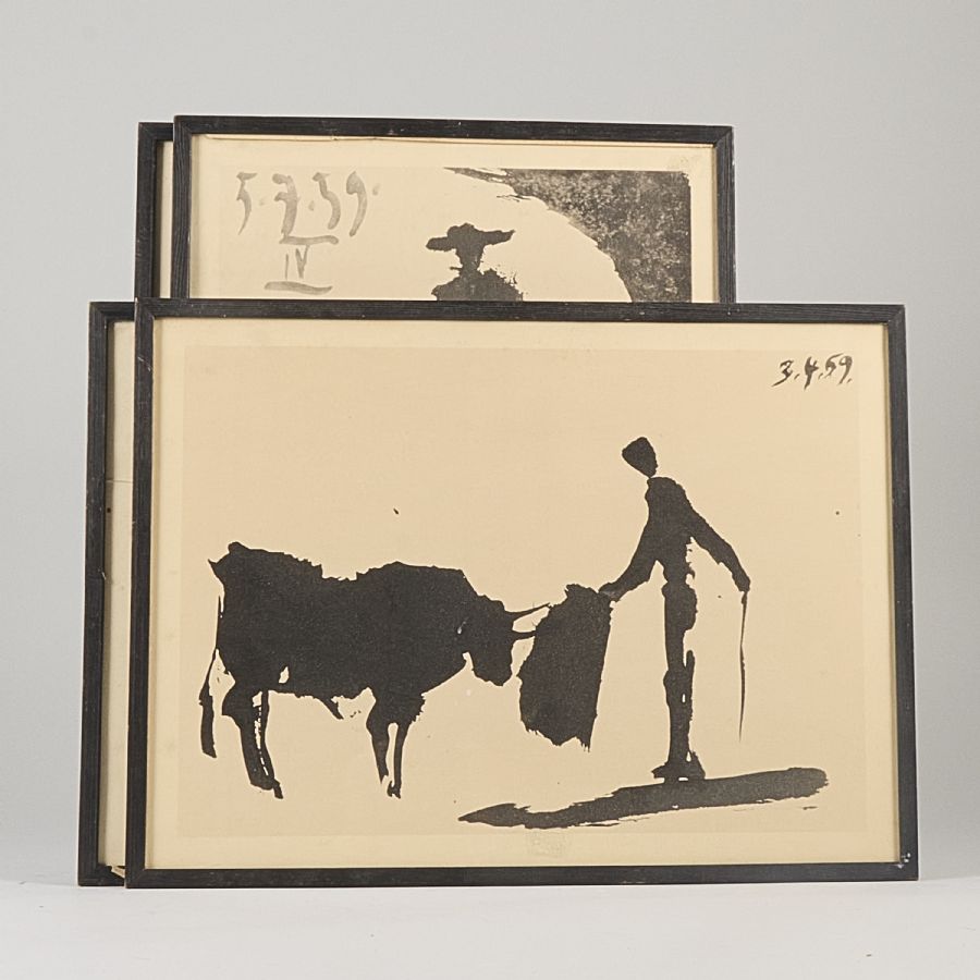 Litografiska tryck, 4 st, Efter, "Toros y Toreros", yttermått inklusive ram: 37x50 cm