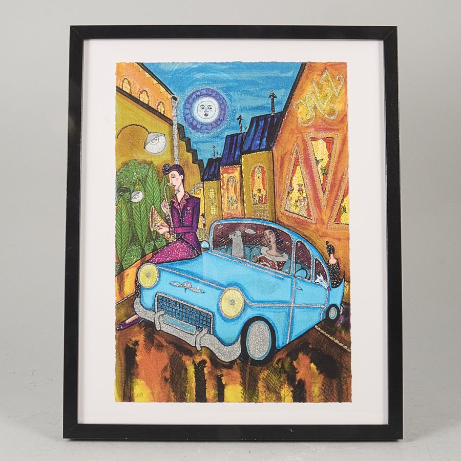 Angelica Wiik (b. 1960), Sweden. Signed, EA-upplaga (Épreuve d’artiste). Litograph in colors. Sheet: 44x30cm, outer dimensions including frame: 53x43cm,