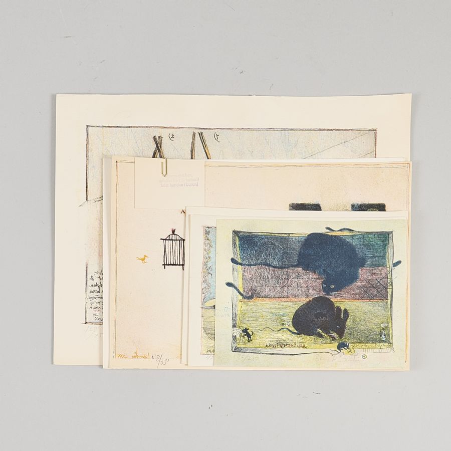 Färglitografi, 6 st, 14,5-18,5-27x35 cm, oramad. Signerad