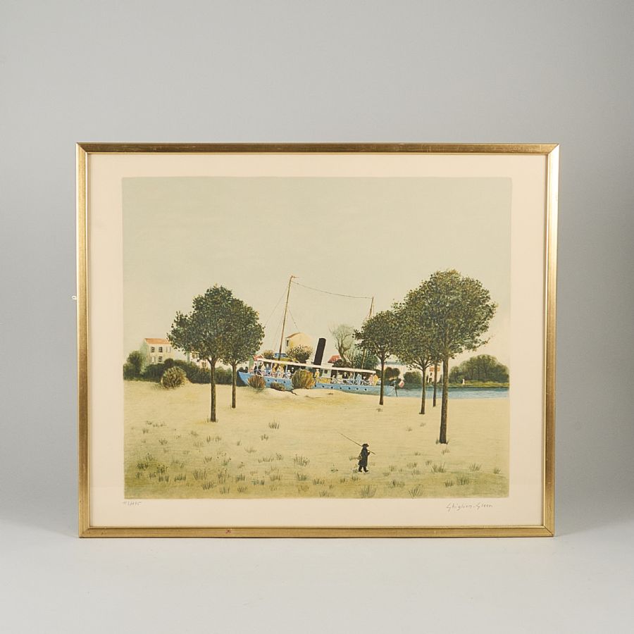 Ghiglion-Green. Signerad, numrerad 153/175. Färglitografi, bildmått: Kanalbåt. Färglitografi, bildmått: 45x54 cm, yttermått inklusive ram: 55x67 cm