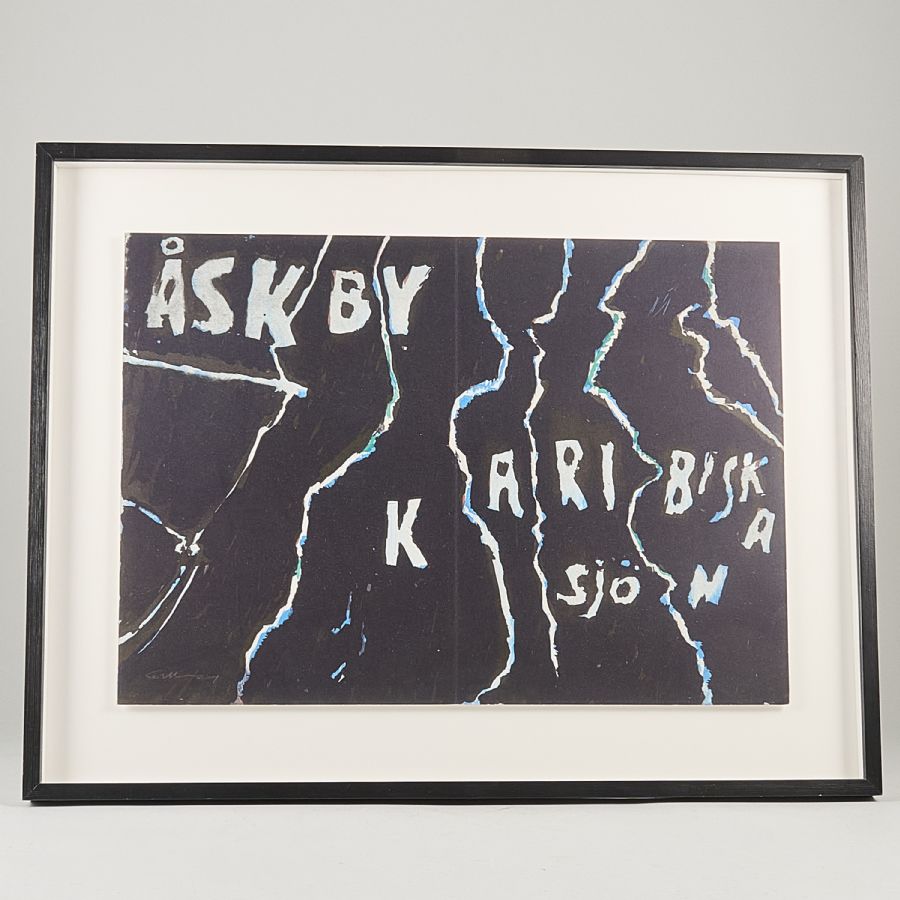 "Åskby Karibiska sjön". Signerad, färglitografi, bm42x58 cm, yttermått inklusive ram: 58x74 cm