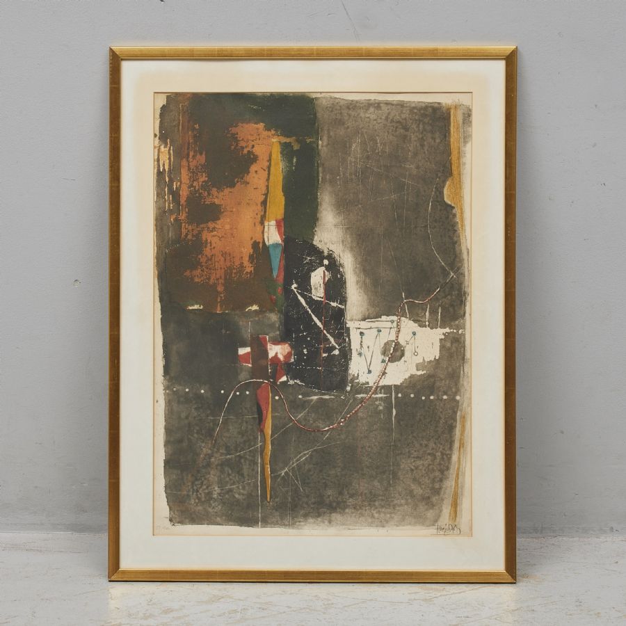 Johnny Friedlaender (1912-1992), Komposition. Signerad, numrerad 54/99, Oeuvre Gravée. Färglitografi, bildmått: 75x54 cm, yttermått inklusive ram: 91x69 cm