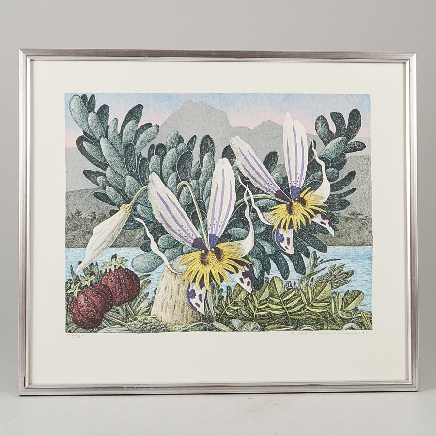 Karl Axel Pehrson (1921-2005), Sweden. Signed, numbered 197/385, dated - 87. Litograph in colors, Image dimensions: 31x40 cm, outer dimensions including frame: 44x52,