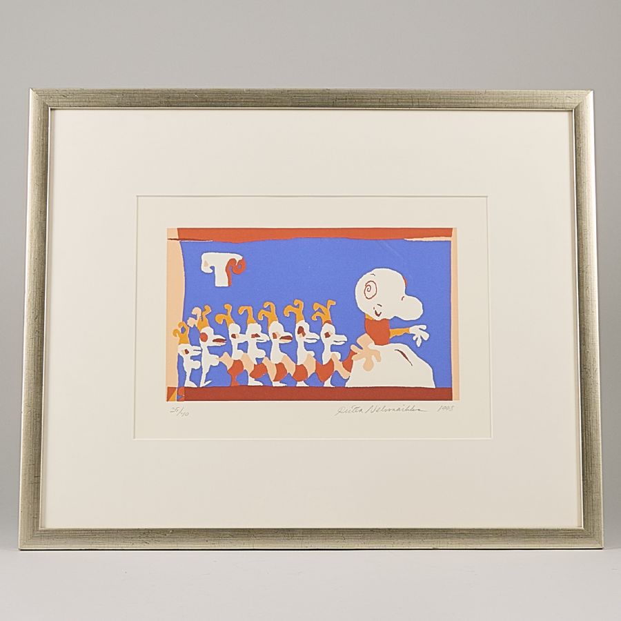 Signerad, numrerad 25/40, daterad 1995. Färglitografi, bildmått: 18x30 cm, yttermått inklusive ram: 47x58 cm