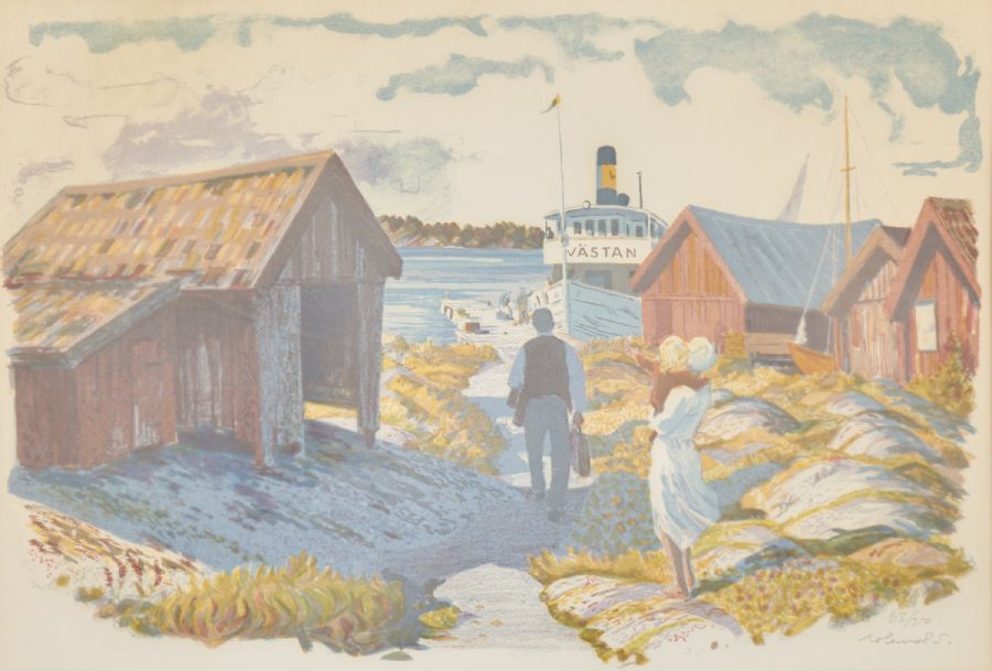 Färglitografi, Roland Svensson (1910-2003), 63/310, Västan, motivet: 31x44