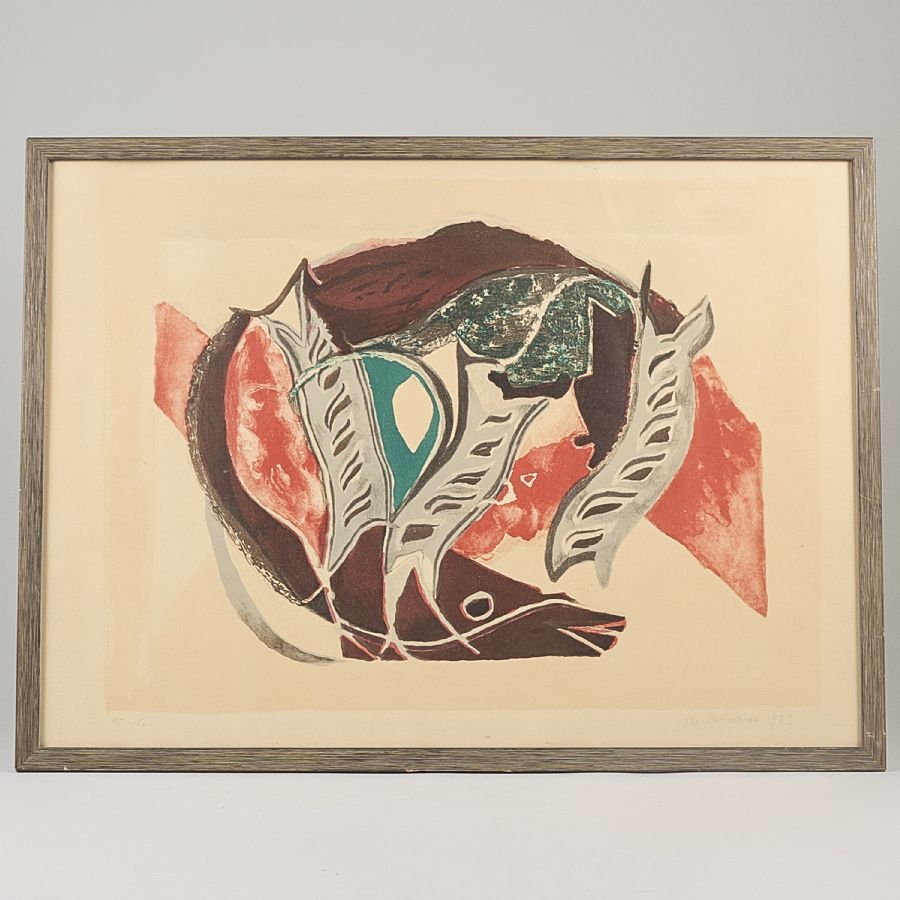 Signerad, numrerad 95/160, daterad 1963. Färglitografi, bildmått: 46x60 cm, yttermått inklusive ram: 54x73 cm