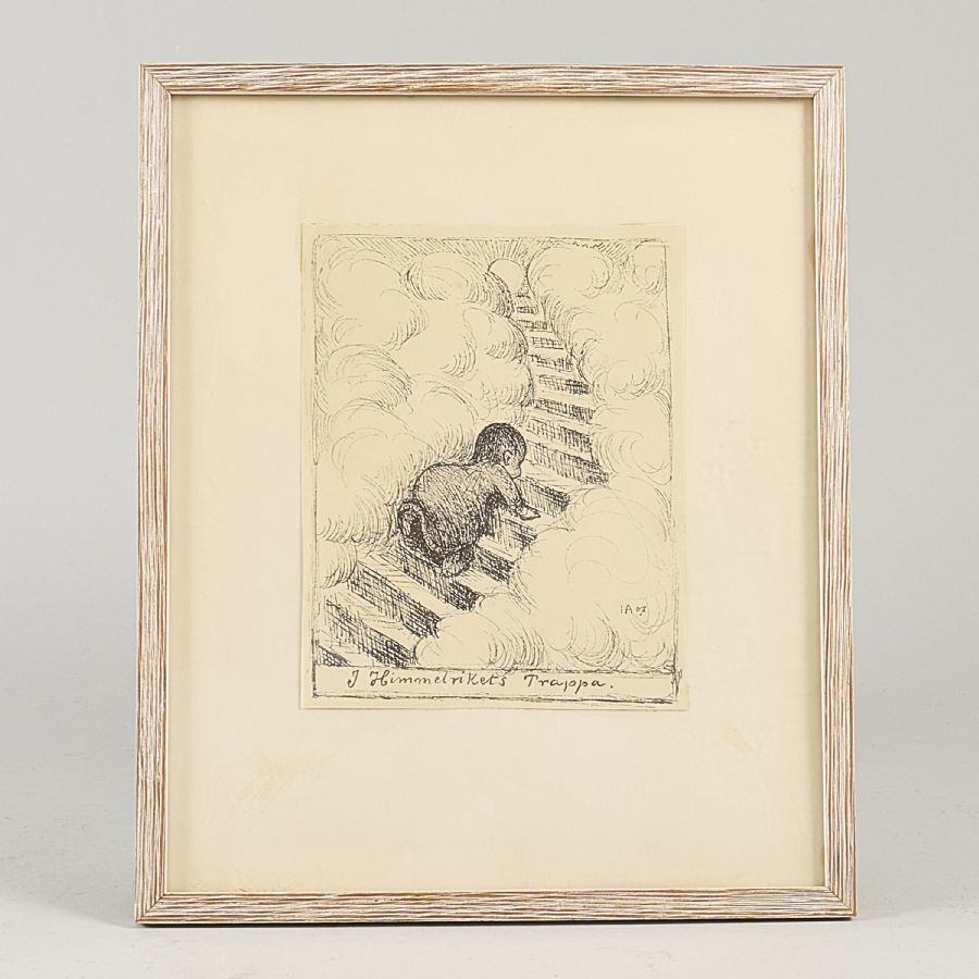 Litografi, Nonogramsignerad 07, "i himmelsrikets trappa". Bildmått: 15x12 cm, yttermått inklusive ram: 29x24