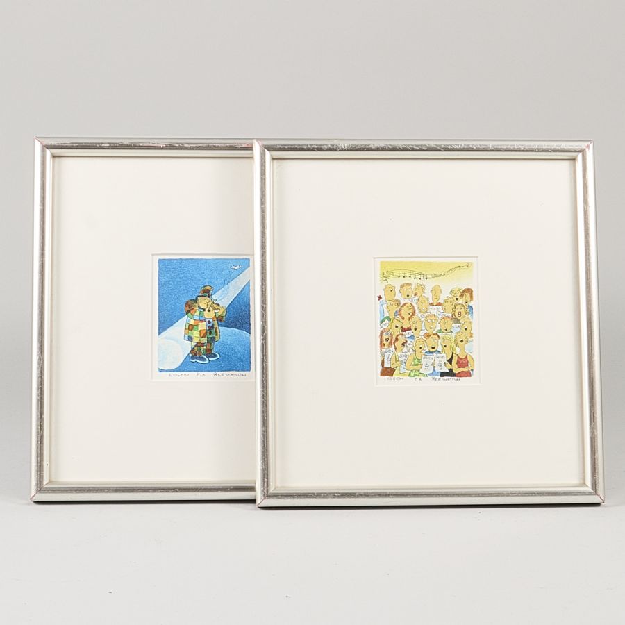 2 pcs, Ã…ke Westin (b. 1939), Sweden. Signed, numbered EA. Litograph in colors, Image dimensions: 9x7, outer dimensions including frame: 28x26,
