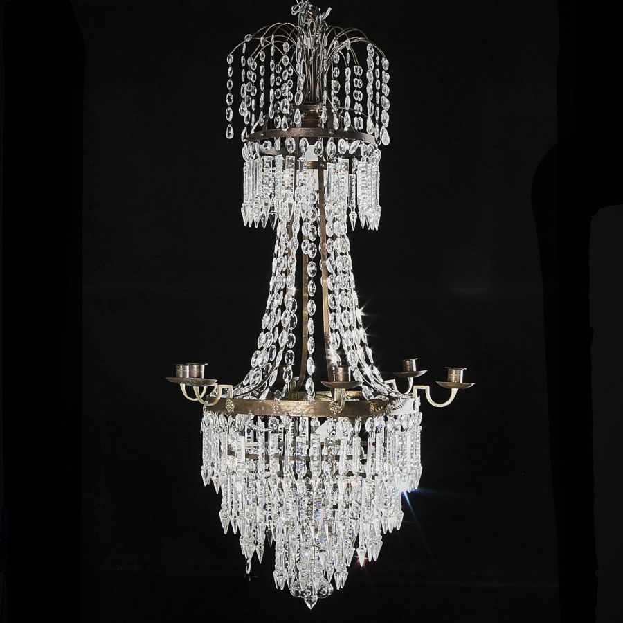 Gustaviansk stil, pärlprismor, för 6 ljus. Höjd: 1..//
