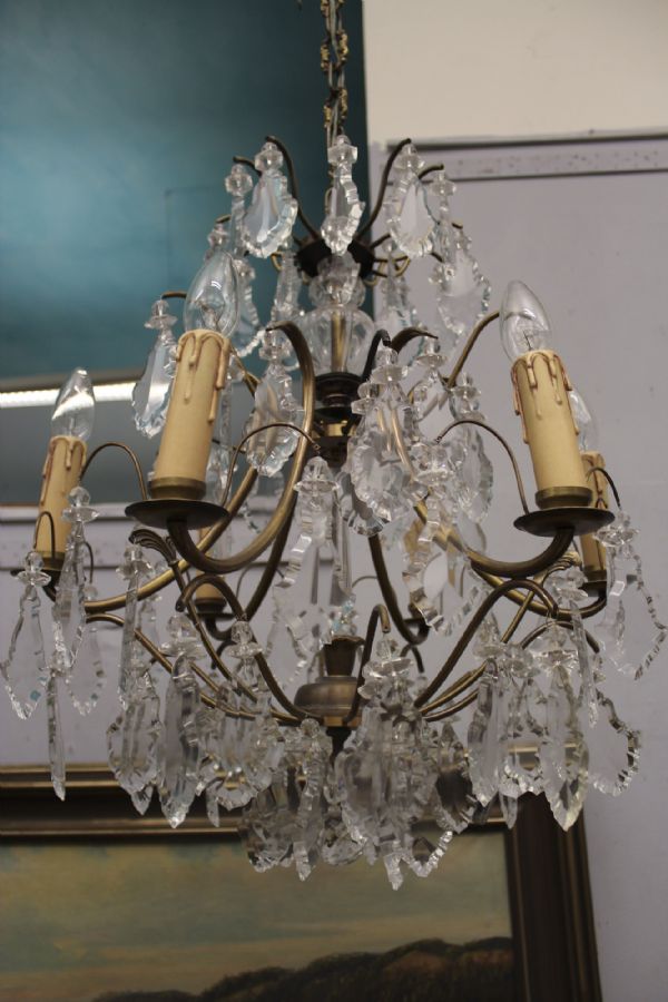 with pendants, stomme i mässing, åtta ljusarmar. D..//