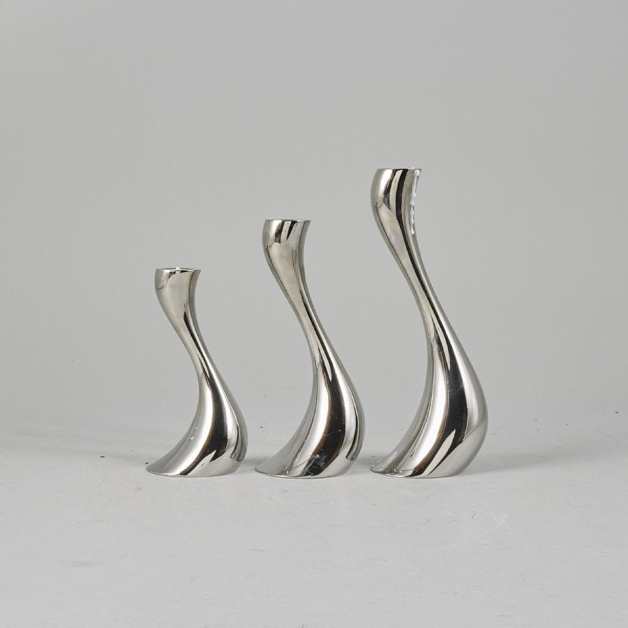 3 delar, "Cobra", Constantin Wortmann för Georg Jensen, Danmark. Rostfritt. Höjd: 16-24cm