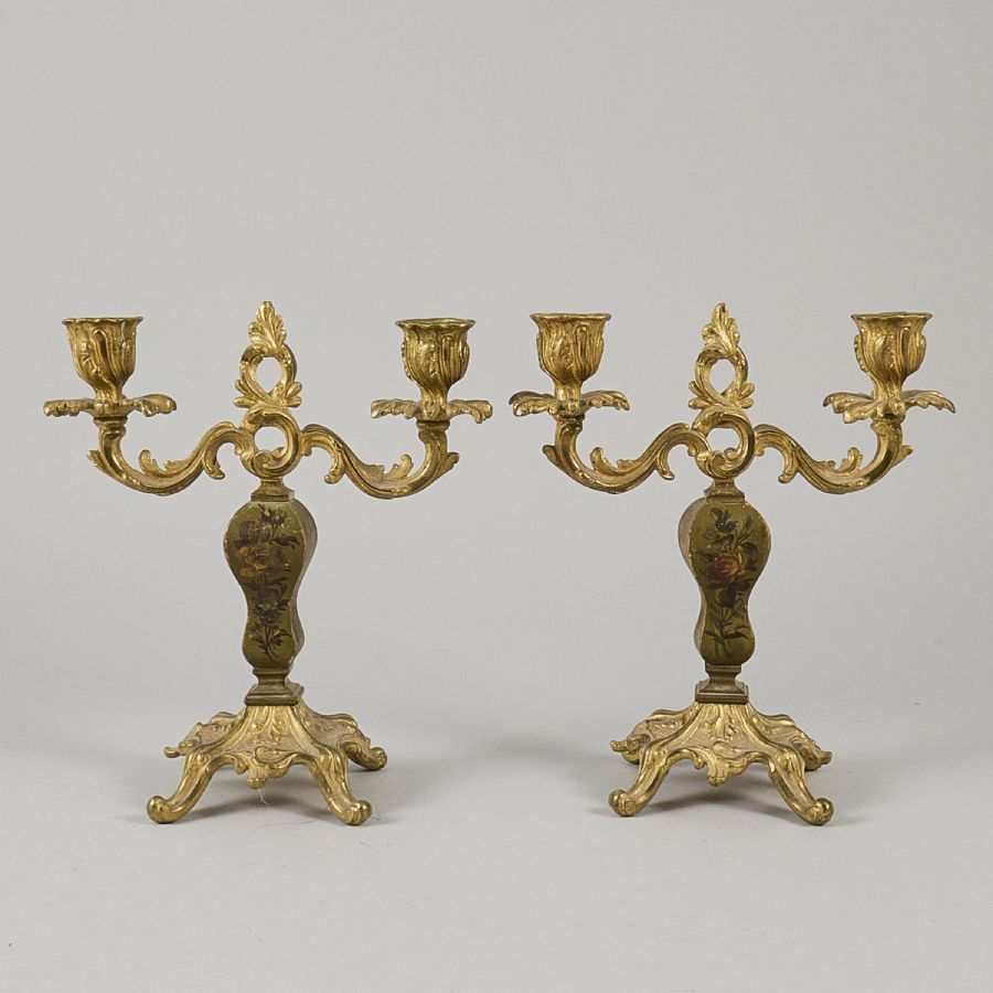 one pair, Italisn, mässing / bemålade. Height: 22 cm,
