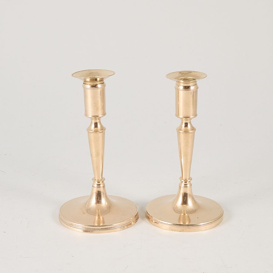 Ett par, mässing, 1800-tal, Pärlkant. Höjd: 17 cm